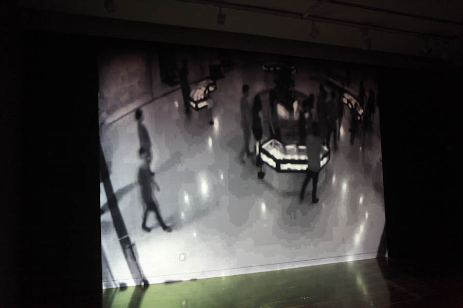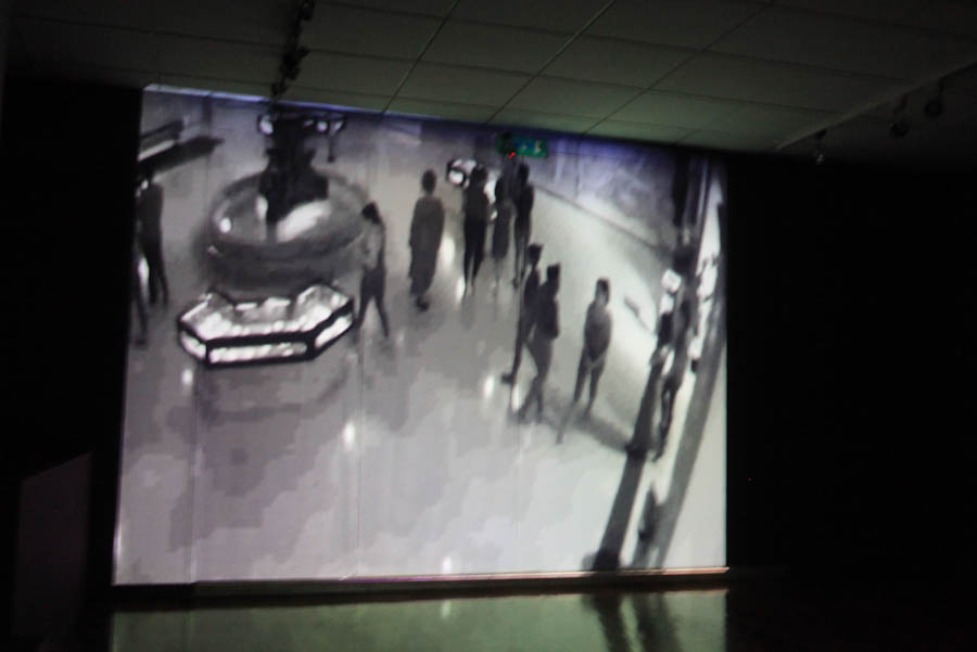 A gravação foi feita pelas câmaras de vigilância do museu: de performers vestidos de propósito para o efeito, bem como do público presente na inauguração, que deambula pelos espaços do museu, que “serão projetadas no espaço da galeria durante o tempo todo da exposição”.