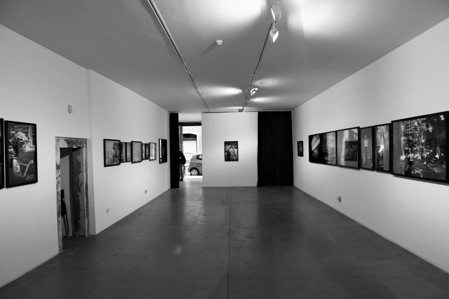 A apresentação na Galeria das Salgadeiras é quase uma instalação: as fotografias são apenas três, do número mais amplo da série: duas no piso de entrada e uma acima. Uma cortina negra protege a entrada, entramos. As paredes estão revestidas a negro, ‘placas’ de cartão negro, precárias. Sobressaem as imagens, suspensas, como se reais, como se estivéssemos no próprio espaço, o chão de terra… Subimos os degraus ao piso superior, envoltos no negro das paredes, e no vão da cobertura temos a outra cobertura e o resto do espaço, como se a galeria fosse um ecrã, como se as imagens fossem o real. Temos assim um espaço muito maior, como se estivéssemos lá, como se o vivêssemos. Como se ficássemos com saudades.