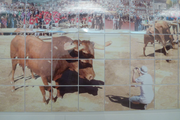 Em contraste ou complemento com este painel… Surge agora um conjunto de composições de múltiplas fotografias, de encontros: almoços, festa, amigos, a descontração, o peixe assado, o copo de vinho, também os toiros (garraios), pelas fotografias de Ormond Fannon (SNBA), que nos lembram de algum modo as imagens de David Hokney; Fannon contudo respeita cada fotografia, cada imagem, sem sobrepor impressões, criando como que paineis de azulejos fotográficos:
