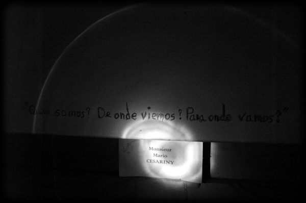 O título, “Monsieur Cesariny”, é parte da inscrição que Cesariny tinha na porta do seu quarto: “Monsieur Mário Cesariny”, é um entrar na sua intimidade.