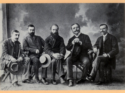 Da esquerda para a direita: Eça de Queiroz, Oliveira Martins, Antero de Quental, Ramalho Ortigão e Guerra Junqueiro. Fotografia tirada no Palácio de Cristal, Porto.