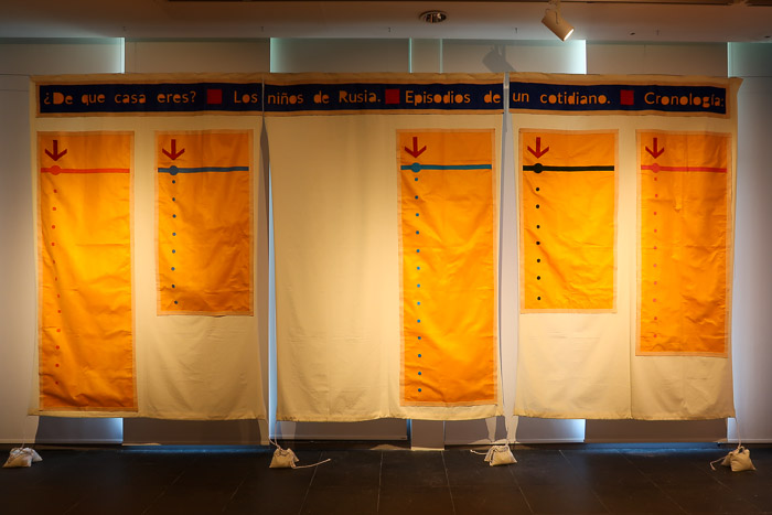 Esta é uma instalação construída com recurso a objetos pessoais da minha mãe assim como documentos e fotografias recolhidas nas viagens que fiz à Rússia e Ucrânia. ¿De qué casa eres? contém um cariz autobiográfico, ainda que seja uma apropriação das memórias e das vivências da minha mãe e tia. Apesar de um desenvolvimento relativamente feliz, o trauma de guerra e da condição de refugiado continua a permear o meu quotidiano familiar. A herança e vivência destas memórias que não são minhas podem ser descritas como uma Pós-memória, que se traduz num mecanismo transversal de análise sobre as particularidades da minha identidade.
