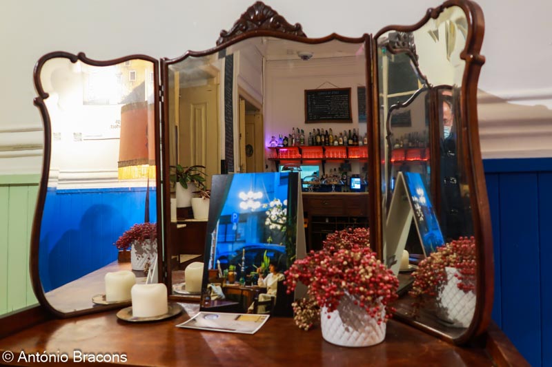 Nas escadas para o andar de cima, vemos o “Largo Bem-Formoso” pelo olhar de Mariana Delgado: