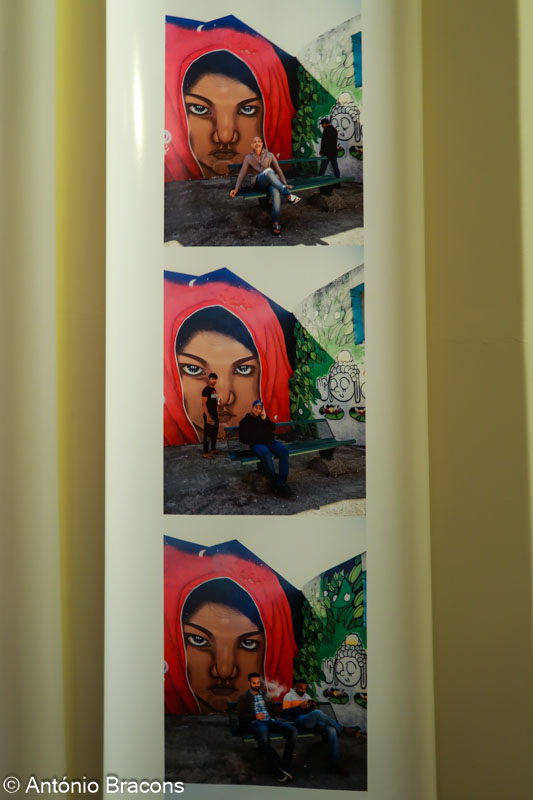 Num dos locais mais movimentados e vibrantes do Intendente manteve-se fixo um dispositivo fotográfico com uma câmara e tripé. O cenário incluía ainda um banco e um enorme mural com uma figura feminina Oriental. Uma grande diversidade de personagens passava. Andando, olhando e parando para telefonar, descansar, comer e beber ou apenas para conversar e alguns, claramente posam para a câmara. Dessa forma as fotografias captam fragmentos da vibração daquela rua. Vibrações criadas pela grande variedade de origens das pessoas… são Residentes, Trabalhadores ou Turistas a fazer uma pausa nas suas jornadas por Lisboa. Uma espécie de tira de quadradinhos em que, cada um, faz parte de uma cena. Um hibridismo entre a banda desenhada e a fotografia e que também faz lembrar o cinema, como uma série de fotogramas.