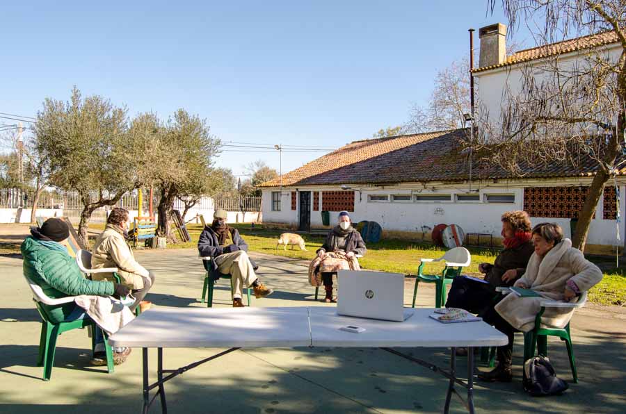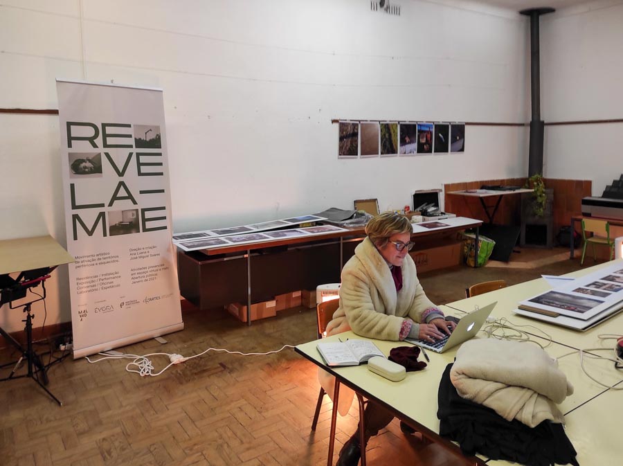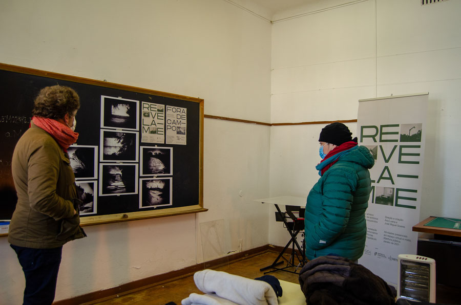 Um portão fechado a cadeado encerrou, durante mais de uma década um espaço desativado, é deste lugar que emerge todo o projecto e a instalação fotográfica que se expõe num percurso pelas azinhagas do bairro, que desde o confinamento começou a atrair muitos visitantes de outros pontos da cidade que encontram aqui um espaço de respiração e liberdade para as suas caminhadas. Subitamente, nos últimos meses temos assistido a várias transformações neste território que é o centro de criação de Revela-me. Como artistas residentes nesta cidade e nesta freguesia temos registado e partilhado com a equipa artística, a comunidade e o público, o estado de abandono, as idiossincrasias deste bairro e as inesperadas transformações ocorridas. Em Novembro de 2020, durante a primeira residência de criação, realizámos uma segunda visita ao interior deste edifício, desde então parcialmente ocupado pela ARS Alentejo. No entanto, a sua ativação continua a servir propósitos de exclusão e de afastamento, mantendo-se como espaço interdito – Área Dedicada para Doentes Respiratórios COVID. Coincidentemente, a sucata depositada nas azinhagas, nos caminhos, junto a muros e nos ribeiros que ali permaneceram durante anos e meses tem sido recolhida nos últimos dias. Precisamente no primeiro dia da residência Fora de Campo, foram retirados equipamentos obsoletos e amontoados na Antiga Escola Primária dos Canaviais, desde o seu encerramento. Acreditamos que estas movimentações estão ligadas a este projecto artístico, à sua comunicação e à força potenciadora inerente ao acto criativo.