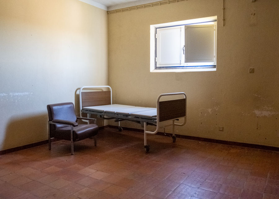 A Malvada [Associação Artística] tem a sua residência nos Canaviais, o mais periférico bairro da cidade de Évora, uma cidade periférica no interior de um país periférico, que é um dos mais centralizados da Europa. Aquele território a céu aberto que Bruno Vieira Amaral introduz como o retrato do país real que “não pode ser levado à UNESCO para aprovação e saudação, não é fado, nem cante, nem chocalho, nem bonequinhos de Estremoz, não é praia, nem resorts de luxo na costa alentejana, nem hotéis de charme no interior ressequido”. Numa primeira visita ao Antigo Hospital Psiquiátrico, em Março de 2020, no dia em que foi anunciado o primeiro confinamento, realizámos um registo fotográfico que documenta o seu interior, o torna visível e serve o início de uma narrativa performativa que cruza a fotografia, a escrita e o teatro.