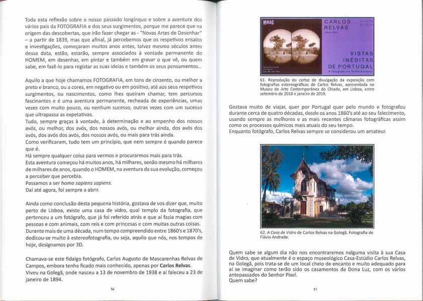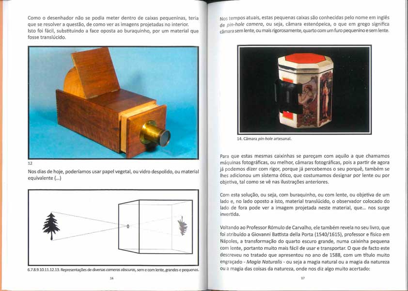 E assim, José Soudo convida Rómulo de Carvalho, fala de Da Vinci, da camara obscura e da atual pin-hole, de como este efeito se teria sentido já na pré-história e como se reflete nas câmaras fotográficas do séc. XIX e nas de hoje… E ainda de Nicéphore Niépce, Jacques Mandé Daguerre, William Fox Talbot, Thoma Wedgewood, Humphry David, John Herschel, Hercule Florence, Hyppolyte Bayard e tantos outros. E a Tri-Chromia e o cinema dos Irmãos Lumiére… E o nosso Carlos Relvas!