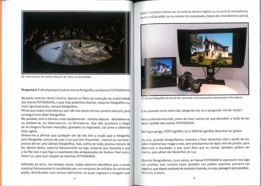 Optei por escrever uma “História da Fotografia”, para os jovens alunos, que lhes contei de viva voz e que me atrevo a dizer que até os adultos deveriam ouvir ou ler, isto em vez de apenas lhes ler outros textos soltos de outras proveniências.