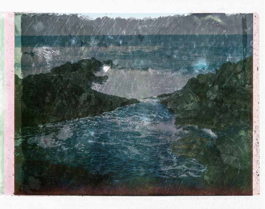 As restantes fotografias, que formam um conjunto maior, resultaram de transferências de camada química. Em termos visuais, são menos homogéneas no que diz respeito à amplitude do plano e à competência propriamente figurativa da imagem. Vemos sobreposições de diferentes imagens (porque é possível realizar vários transfers para um mesmo suporte), que se fundem para compor realidades espectrais e fantasmáticas; noutros casos, deparamo-nos com imagens em que o processo químico desencadeou disrupções visuais – que podem abranger desvios na densidade e na cor (como a água do mar com uma coloração amarela) até à constituição de manchas abstractas. São, portanto, imagens profundamente afectadas pela mediação química, que operam deslocações para domínios visuais que quebram com a expectativa habitual da eficácia fotográfica na relação entre representação e representado. É um imaginário instável e impermanente, o que é certamente uma qualidade, porque trata de assegurar uma das expetativas que mais anima a prática artística, o ensejo de um olhar diferente, sugestivo e propiciador, passível de mobilizar no espectador aquilo que ele tem de mais subjetivo, intuitivo e projetivo.