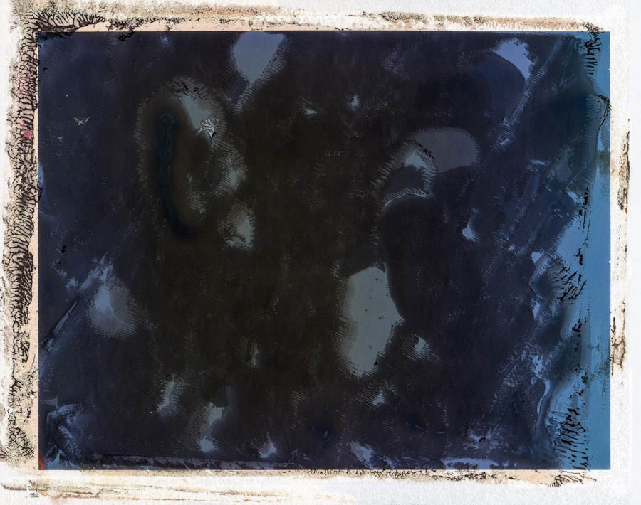 Tito Mouraz trabalha em película e só no laboratório surgem os primeiros resultados. Neste caso, como ele próprio explica: “tive que trabalhar com os resultados do momento e com decisões praticamente imediatas. O filme instantâneo, dependendo da temperatura, é processado em mais ou menos um minuto. Uma vez interrompido esse processo e o filme separado, os corantes podem ser transferidos para outra superfície”. O confronto com estas imagens transporta quem as observa para uma experiência imersiva, uma viagem ao interior, um mergulho.