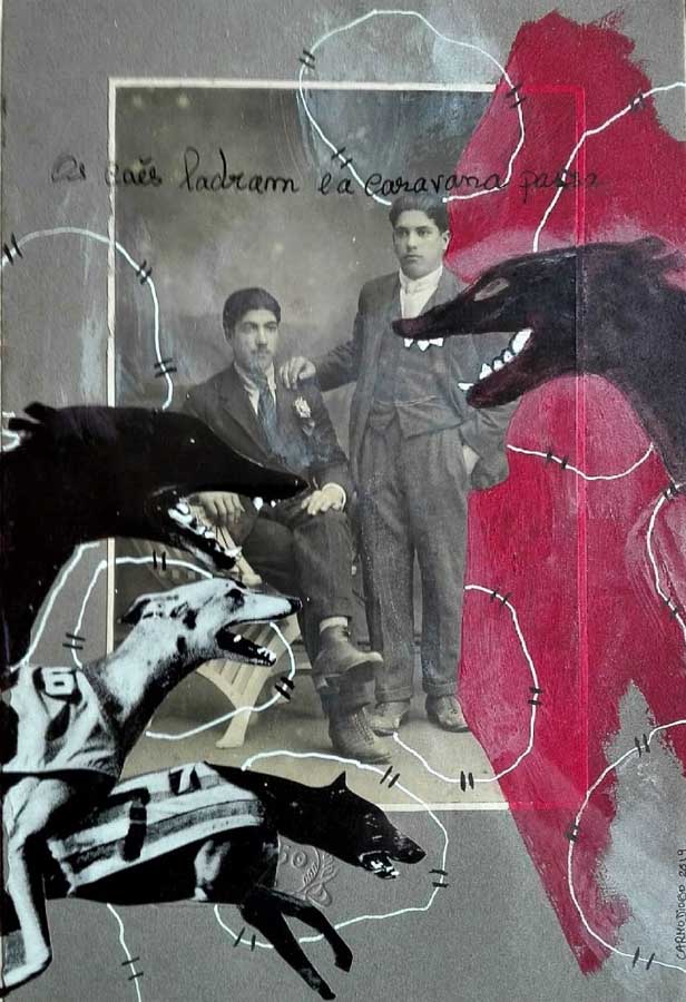 Utilizei a colagem / pintura sobre fotos e bordado.