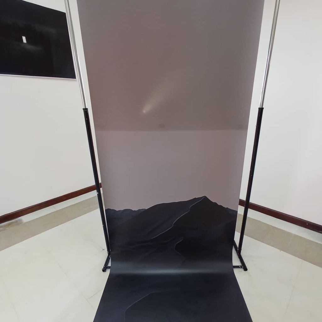 São usados ainda elementos do céu, do espaço, também eles fabricados, representando o que “abraça” o nosso mundo, ou o que se vê daqui, questionando o lugar do Homem e conduzindo o olhar e a atenção para o que nos transcende para além do que nos rodeia na natureza e civilização.