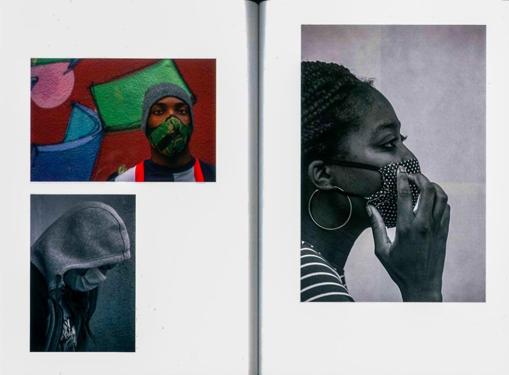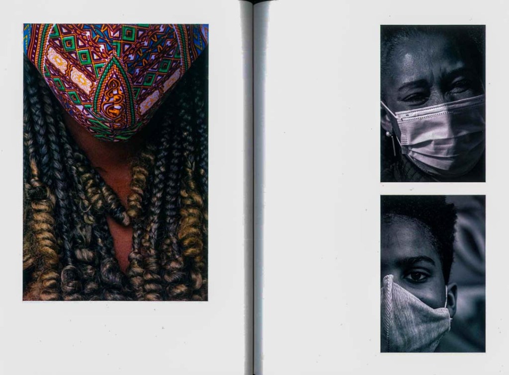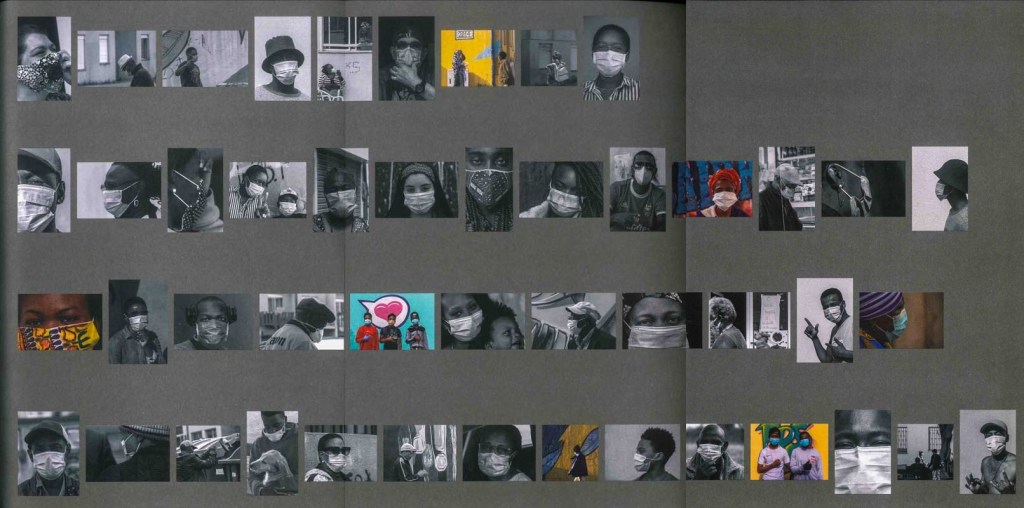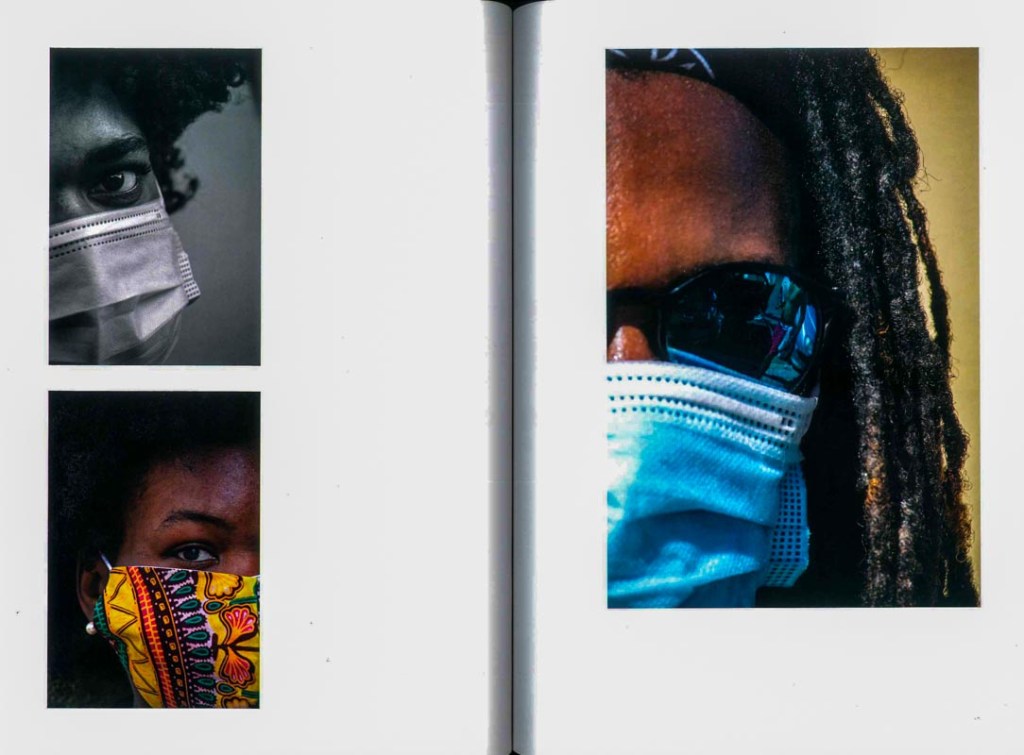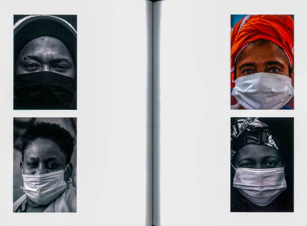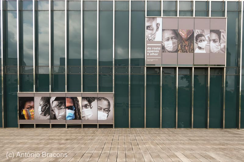 No livro e nas paredes e janelas do piso de entrada do Arquivo, são mais de uma centena os olhares. Nas janelas, as imagens estão impressas em pano, o pano ocupa toda a altura da ampla janela. Quando olhamos a sucessão de rostos, parecem que todos eles estão à janela – e nos olham. Estão à janela – quer dizer, estão em casa, em período de confinamento. E muitos estão, e outros estão na rua, em caminho, em diálogo. Com distâncias, com cuidados.