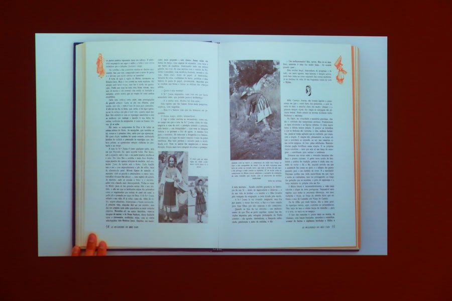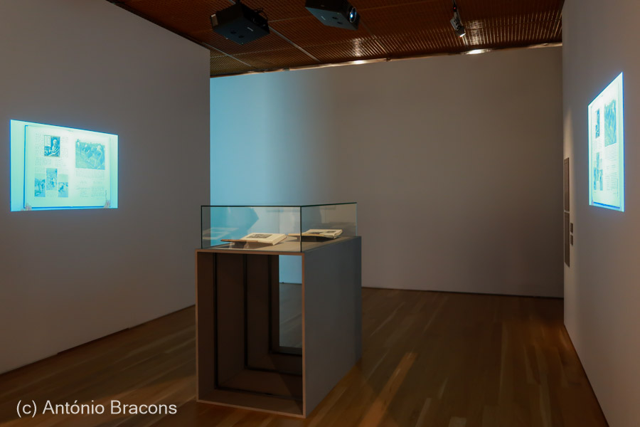Além da exposição de 2 exemplares abertos, apresenta-se em dois ecrãns o “Registo videográfico do livro (…), por Maria Lessa, 2001”