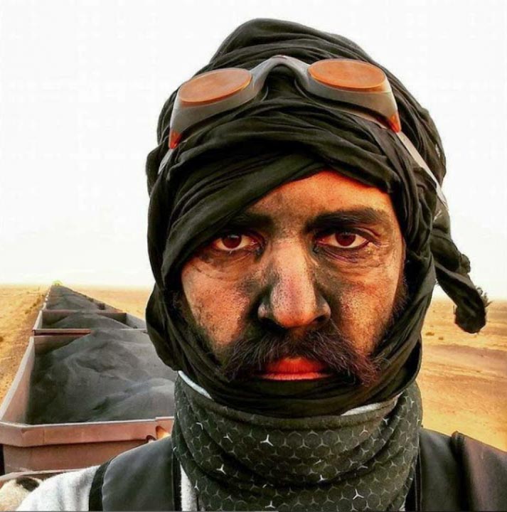 “Eu sabia que ia ser difícil mas foi bem mais duro do que poderia imaginar. De dia estava imenso calor, à noite gelávamos. E aquele pó de ferro, muito fino e preto, entranha-se em tudo. Levei uns óculos de natação, a achar que me iriam proteger, mas nem um dia duraram, Toda a gente naquele comboio usa lenços e turbantes mas é uma guerra inglória. Depois de regressar a casa, e de ter tomado três banhos, ainda tinha pó preto a sair dos ouvidos.”