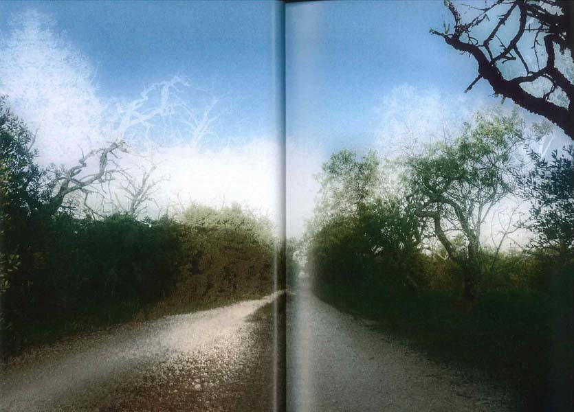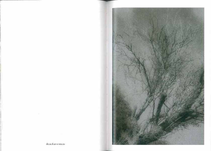 Há nestas fotografias uma estética do fragmento, que se anuncia logo desde o título do livro, onde a palavra nos surge fracionada em sílabas. Na composição da imagem, observa-se ainda um procedimento quase fractal, pelo qual se dá corpo a desdobramentos múltiplos de formas que repetem um padrão de ramificações quase labirínticas e produzem efeitos fantasmáticos, quase mágicos, sobre a paisagem. Também a pixelização intencional esbate formas e amplia sombras, criando efeitos de angústia e de tensão.