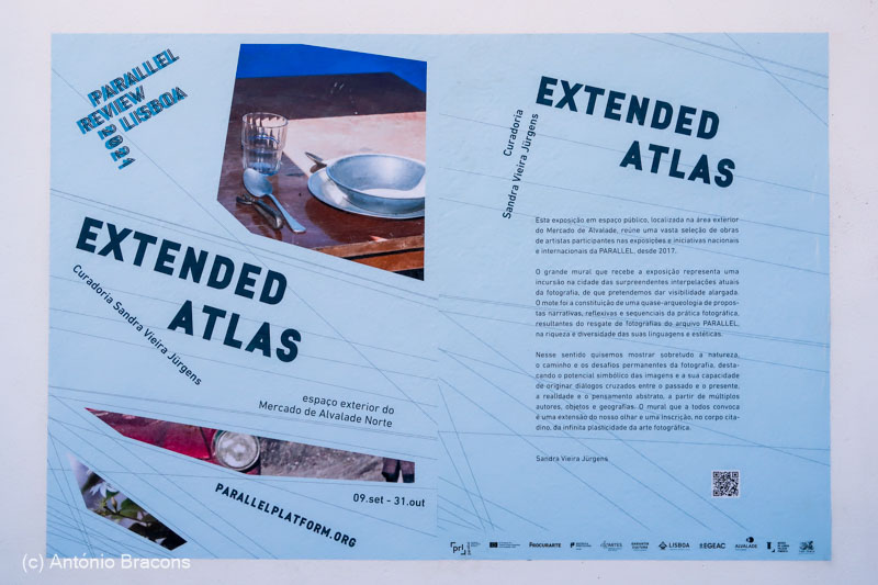 A exposição “Extended Atlas”, integrada no Parallel Review Lisboa 2021, está patente em Lisboa, no espaço exterior do Mercado de Alvalade Norte, de 9 de Setembro a 18 de novembro de 2021 (finissage, 18:00 às 22:00, com a curadora; inicialmente até 31 de Outubro).