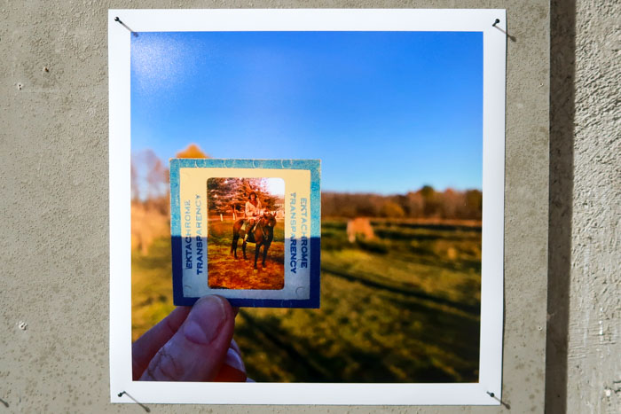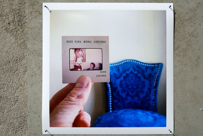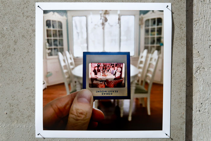 Percebi então que, ao projetar os slides na minha paisagem atual, não estava apenas a criar uma conexão entre a vida dele e a minha, mas também um percurso de memórias, com uma ligação muito própria a cada um de nós. Muitos desses slides são da minha mãe, eles permaneceram juntos quase 60 anos. Ela faleceu, e eu sinto que o seu espírito, e todos os espíritos do passado, estão constantemente ao nosso redor. Essas pequenas vinhetas da vida familiar, transportadas para no meu “espaço” atual, confortam-me, pois sinto que ela e outras pessoas ainda estão, por perto, a cuidar de mim. Como se criassem um “lar” para mim, onde quer que eu vá.