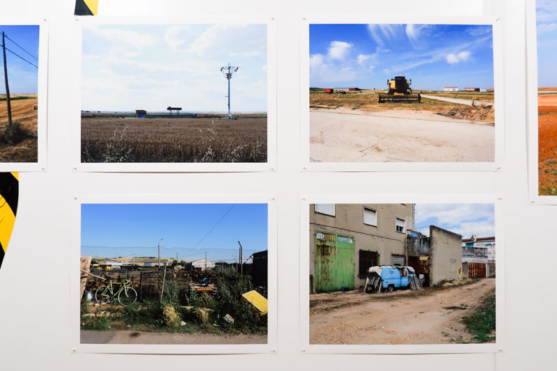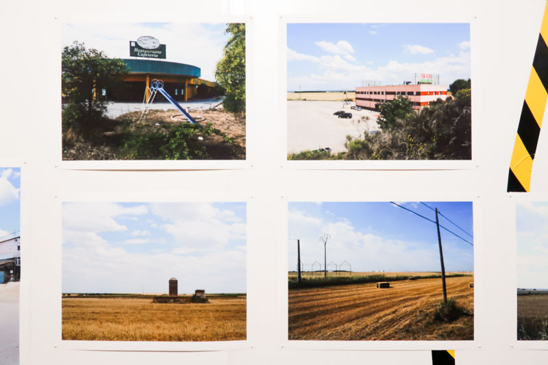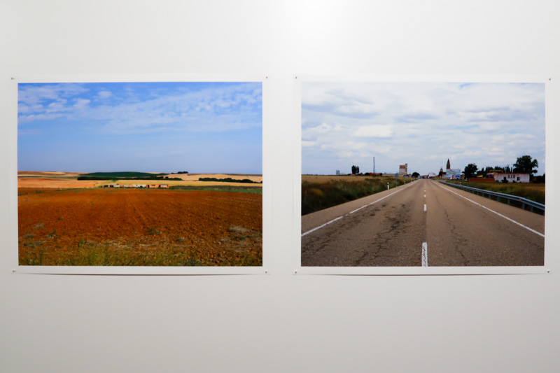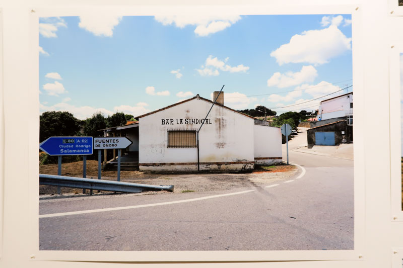 Quando falavam, era em termos negativos: é feio, é plano, é sujo, é monótono… os espanhóis são maus, maldosos, mentirosos, ladrões… Nada neste país, que atravessavam o mais rapidamente possível, sem parar ou o menos possível, encontrava graça aos seus olhos. Reabastecer gasolina e dormir antes da fronteira, parar para merendar num grande parque de estacionamento rodeado por outros viajantes que, como eles, odiavam este país pelas mesmas “boas razões”. O que é que eles conheciam? A Nacional 1 que ia da fronteira até Burgos onde a deixavam para tomar a Nacional 62 até Vilar Formoso, um dos pontos de entrada do país. Estávamos em finais dos anos 60, anos de hemorragia migratória para a França, a Alemanha, ou um país mais distante: outro lugar para uma vida melhor. Após o fim das ditaduras em meados dos anos 70, os espanhóis começaram a melhorar a rede rodoviária e a construir por todo o lado autovias de 4 pistas, com a ajuda de fundos europeus. Foi um enorme benefício para os portugueses que a atravessavam ainda mais rapidamente. Rapidamente percebi que não aderia às suas apreciações, aos seus julgamentos que pensei serem nutridos por “lugares-comuns” que se desenvolveram ao longo de séculos de história conflituosa entre os dois países. Da minha parte, estas grandes paisagens vazias, oprimidas pelo calor de julho, impressionavam-me. O ritmo de grandes aldeias que pontilhavam a paisagem de longe em longe seduziam-me. Estes amplos espaços abertos remetiam-me para certos filmes americanos. Mais tarde entrariam em ressonância com certos fotógrafos ou com a pintura de Hopper. Pouco a pouco descobri este país de este a oeste e de norte a sul, por ele mesmo, não apenas como uma superfície a atravessar. Há alguns anos, ao regressar, decidi, sempre que possível, voltar pelas antigas estradas; a N62 e a N1… apenas para ver. Depois do almoço, num desses restaurantes de aldeia que atendem principalmente os trabalhadores locais ou aqueles de passagem que trabalham num canteiro d’obras, deixei-me ir para relaxar e tirar algumas fotos da aldeia. Foi ali que vi aquele painel de reclame em azulejos, representando um homem a cavalo, que gabava o mérito dos adubos “Nitrato do Chile”. Naquele momento, diante deste painel desgastado pelo passar do tempo, sob o calor esmagador daquele início de tarde, deixei-me invadir por todas as viagens, todas estas travessias que se amontoaram umas sobre as outras. As lembranças de factos, de lugares e sobretudo de sensações empurravam-se. Elas tomavam lugar nos pisos de uma construção inacabada da qual eu não tinha a certeza da ordem, mas sabia que aquele painel encarnava os alicerces.