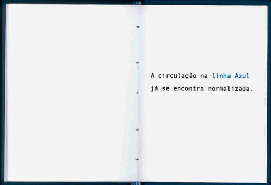 O projecto “Metro” surgiu de forma impulsiva e despretensiosa. Numa estética Lo-Fi decidi captar pormenores pelos quais passo diariamente nas minhas viagens de metro para a universidade. Faço a linha azul desde Colégio Militar / Luz até à Baixa-Chiado, ida e volta. No dia em que peguei na câmara com uma lente de plástico e decidi fotografar alguns desses pormenores, não houve aula e o regresso foi imediato, tornando a observação desses pormenores mais intensa. Da frustração das viagens em vão nasceu a criatividade e decidi compilar as imagens captadas num pequeno livro de 10,5cm x 8cm, numa edição de 20 exemplares, todos impressos numa simples fotocopiadora a laser. A ideia era criar um livro, que pudesse ser levado no bolso e revisitado em qualquer lugar. Um livro que não inspirasse demasiados cuidados, nem aspirasse a ser mais do que aquilo que é: uma colecção de pequenos fragmentos de uma viagem de metro. Fragmentos esses que vamos interiorizando e que se tornam familiares, mas que, tirados do contexto, ganham uma dimensão abstrata e que se dispõem a reinterpretações.