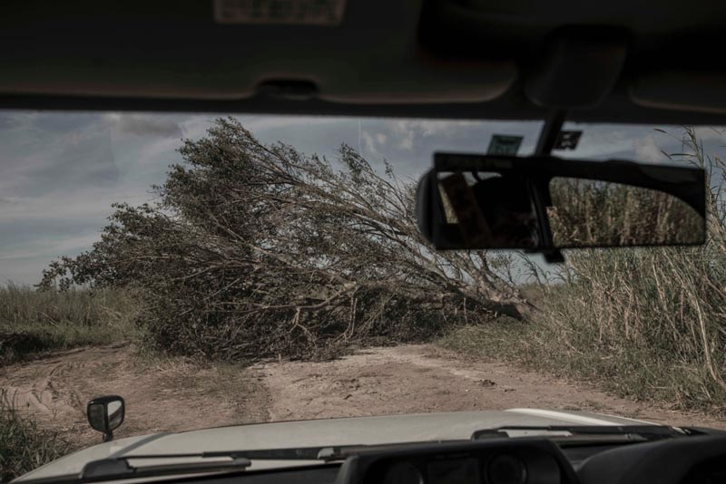 De O Fim da Linha do maior campo de refugiados da Europa, a janela abre-se para a tragédia causada pela passagem do ciclone Idai, que arrasou povoações e a vasta paisagem da região da Beira, no norte do belo país que é Moçambique, em março de 2019. As fotografias de O Dia em que a Terra se Fez Mar mostram paisagens sob um céu zangado, aldeias destruídas e cobertas de lama, destroços que ficaram para nos recordar o quanto frágil é o Homem perante a fúria da natureza. Só que o ser humano também é um filho da natureza que guarda no seu interior a força de um ciclone. Há que reerguer tabancas com materiais improvisados até que os preços do comércio e dos materiais de construção baixem.