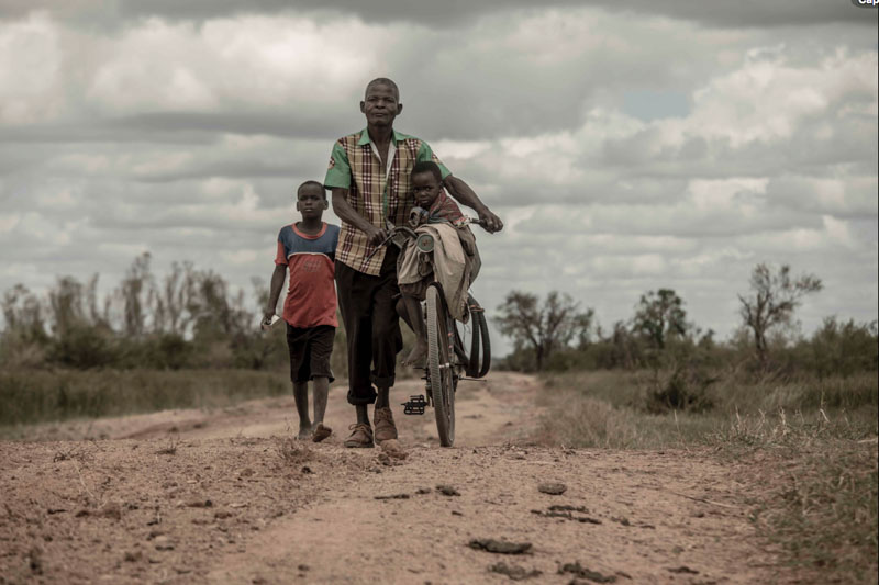 Na viagem que levou Tiago Miranda e Raquel Moleiro à Beira – através dos contactos com a ACERT (Associação Cultural e Recreativa de Tondela), que desenvolveu um conjunto de iniciativas para ajudar a Escola Secundária da Manga, a mais afetada pelo ciclone Idai -, os dois repórteres vão ao terreno para ver e descrever o cenário de isolamento e destruição, mas sobretudo como as gentes simples de Moçambique se erguem no pós-Idai. No caminho de Búzi, a vila mais atingida, os jornalistas cruzaram-se com Venâncio, que, de olhar firme e segurando a sua bicicleta pela mão, leva o filho pequenino e é acompanhado por outro mais velho que andou descalço, durante dez horas. Como os textos de Raquel Moleiro revelam, o objetivo era procurar mantimentos que não chegaram durante o bloqueio, mesmo que para os obter, fosse necessário caminhar até ao infinito. Nas ruas, encontraram crianças com os corpos submersos na água que não desistiram de sorrir, apesar de terem vivido dias no inferno; registaram os afetos e a resiliência deste povo tão especial.