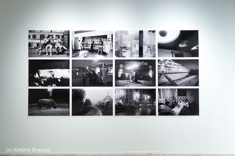 Se o livro impressiona pela vivência, pela extensa memória escrita com luz (primeiro) e com palavras (depois), num repescar de memórias e, pela dimensão ‘de bolso’, intimista – não um álbum que se folheia, mas uma ‘agenda’ que se vê próximo, a exposição é formada por um conjunto de ‘painéis’: de 6×3, 2×3, 4×3, 7×3 e 6×3 imagens, de grande formato (c. 0,72 x 1,00 m), impressas com a ternura do grão que a película naturalmente tem, potenciado pela grande ampliação (impressão digital), de sensibilidades reduzidas a muito elevadas (a vivência noturna assim obriga), numa fotografia constante, permanente, discreta, mas percebida tantas vezes, sem flash.