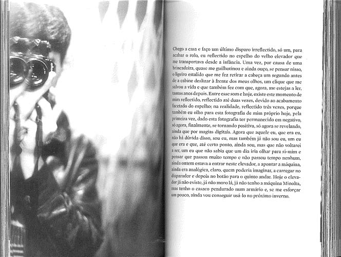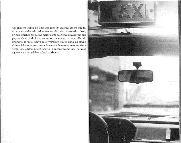 As fotografias sequenciam-se como memórias, ora de dia, ora de noite, o caminhar pela cidade, a cidade e os lugares que se reconhecem, viagens de táxi, em casa, os amigos, outras figuras públicas, com quem se cruzou, e as pessoas que passam ou simplesmente estão, ele próprio… A fotografia é essa memória da cidade, de cada um, de tantos momentos e lugares e pessoas. Fotografias de luz e de palavras.