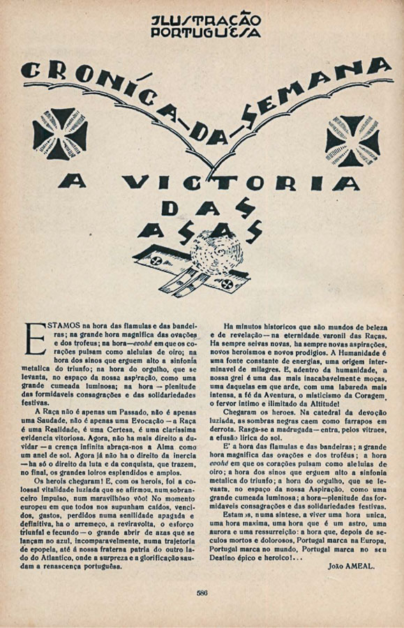 A Ilustração Portuguesa, no n.º 853, de 24 de junho de 1922, além de homenagear os heróis na capa, apresentava parte da viagem e o acolhimento caloroso: