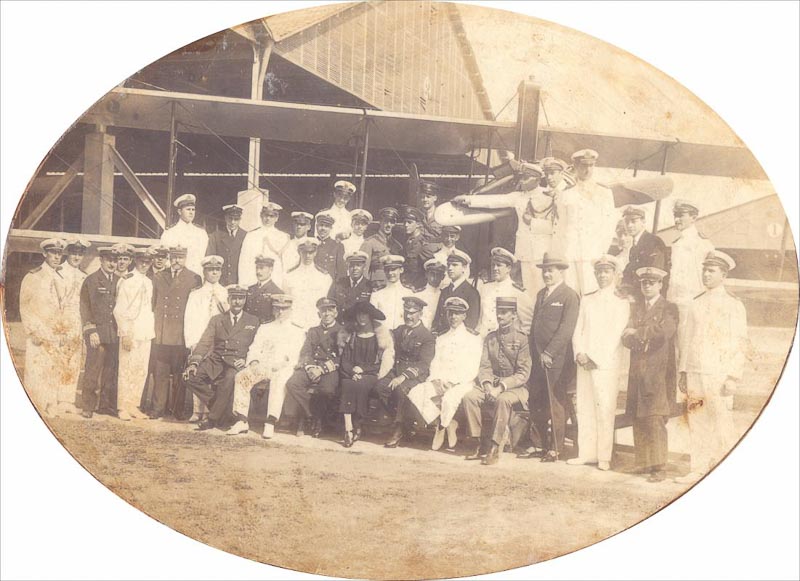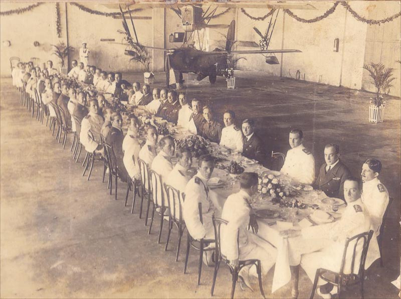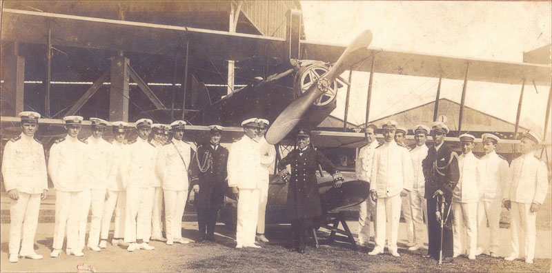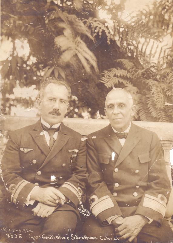 Jorge Kfuri. Gago Coutinho e o Tenente Mário da Cunha Godinho, ao fundo, um hidroavião, na Escola de Aviação Naval – Grupo de Oficiais junto ao aviador Gago Coutinho à frente de um hidroavião na Escola de Aviação Naval – Visita de Gago Coutinho e Sacadura Cabral à Escola de Aviação Naval – Almoço na Escola de Aviação Naval em homenagem a Gago Coutinho e Sacadura Cabral, [todas] 26 de junho de 1922. Rio de Janeiro, RJ – Acervo DPHDM – Diretoria do Patrimônio Histórico e Documentação da Marinha. 3