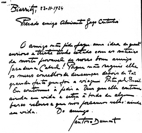 Carta de pesar de Santos Dumont a Sacadura Cabral, Biarritz, 23.11.1924.
