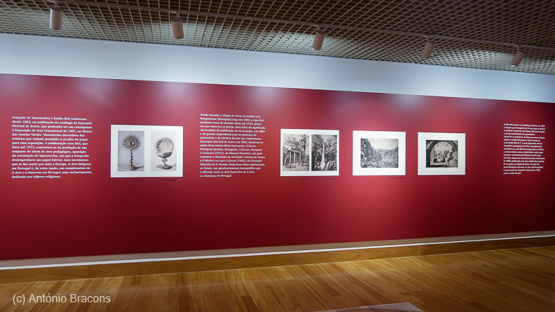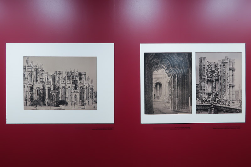Na exposição, algumas ampliações das fototipias das suas obras, permitem-nos ver o detalhe da paisagem e, nalguns casos, o ponto de captação da imagem, por exemplo, no topo plano da estrutura, como nas fotografias de detalhe das Capelas Imperfeitas, no Mosteiro da Batalha. Paralelamente, alguns exemplares dos livros citados, permitem-nos ver a qualidade das impressões em fototipia.