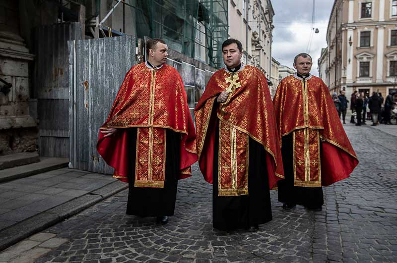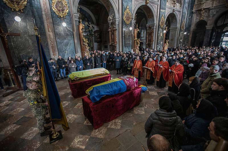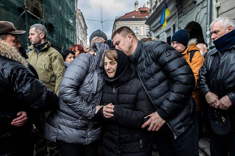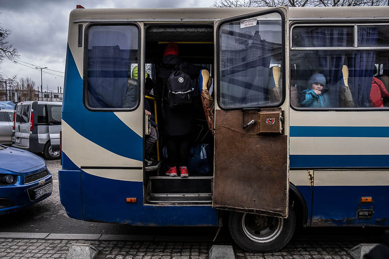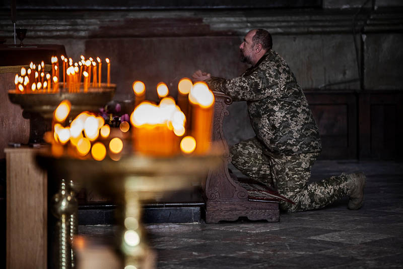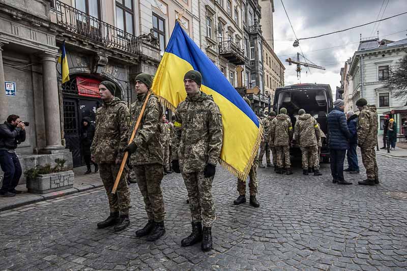 O autocarro com militares está estacionado numa rua perto da igreja. Alguns comem. Imagino que o pequeno-almoço no quartel tenha sido madrugador. Uma bandeira da Ucrânia está enrolada num pau grosso e castanho. Fazem um compasso de espera. Chegará em breve o camarada. Ou dois camaradas. Ou três camaradas. Morto, ou mortos, na linha da frente. Será a hora da despedida. De homenagear com flores e lágrimas. São os novos heróis do país. Anónimos com bravura ou sem bravura.