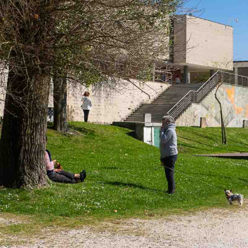 O título “Luz para as Abadias” incorpora o que o Centro de Artes e Espectáculos da Figueira da Foz, projectado pelo Arquitecto Luís Marçal Grilo, trouxe para o Parque das Abadias.