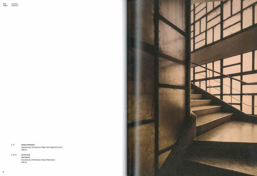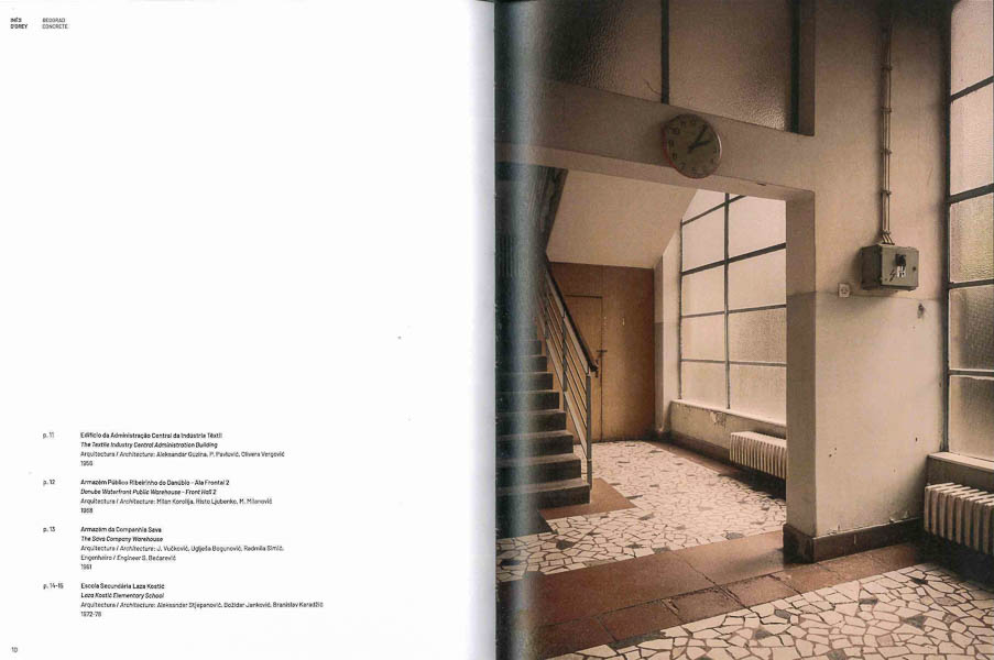 Este livro integra o trabalho fotográfico de Inês d’Orey, conjuntamente com o ensaio de Andreia Garcia, “Uma atitude de descoberta sobre a arquitectura de Belgrado. Imagens transcendentais.”, e “Uma conversa à lareira com Jelena Gacic, Marko Krsmanovic-Simic e Sinisa Vlajkovic” [desculpem a falta de acentuação dos ‘c’], “todos eles de Belgrado e entusiastas da Arquitetura Moderna”, sob o título “A crónica do Modernismo vivo de Belgrado”.