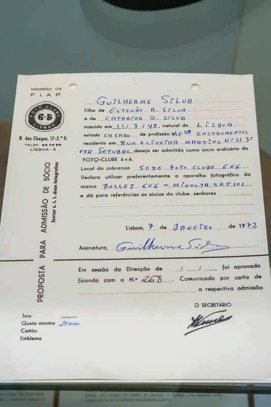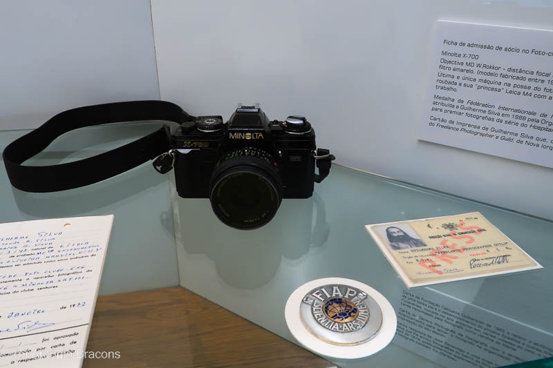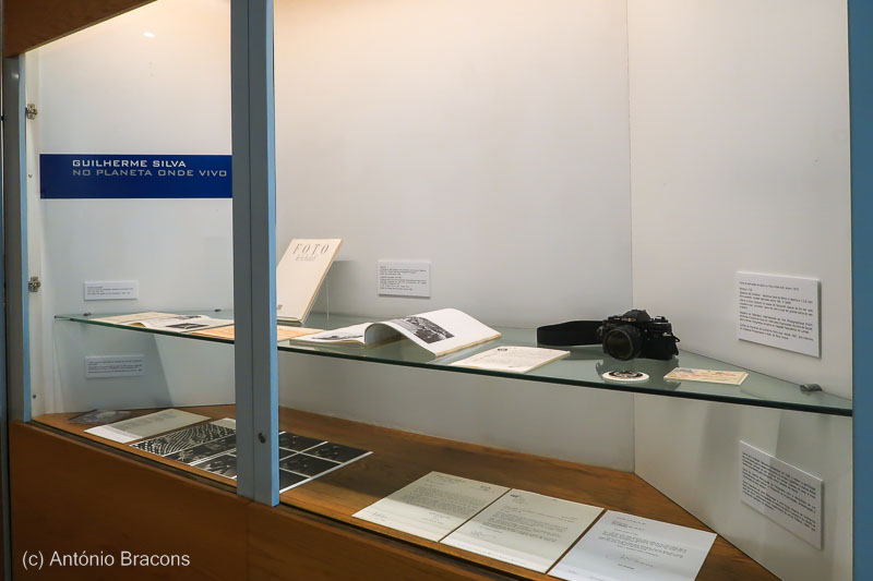 Nas primeiras vitrines da galeria mostram-se diversa peças ligadas à obra de Guilherme Silva, como a sua camera Minolta, o cartão de imprensa, o pin da FIAP, o boletim de inscrição no Fotoclube 6×6, onde veio a ensinar fotografia e criar um grande grupo de amigos, os livros que publicou, alguns convites e folhas de sala de exposições, etc.