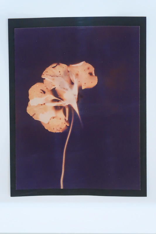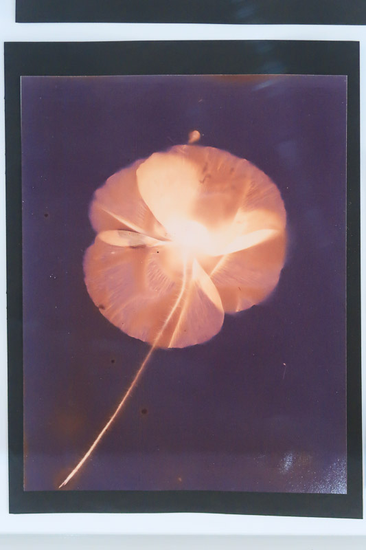 Também a artista Manuela Vaz se confrontou com um abalo na dimensão temporal. Em Com Outras Plantas, Manuela partilha a experiência de uma imersão curta, mas intensa. Absorvendo a memória do natural brotar das ervas e das flores que invadem as beiradas dos carreiros, a artista foi explorando as manchas, as cores e as texturas dessa experiência, através de criações fotográficas de impressão lenta, que designamos por ‘luminogramas’.