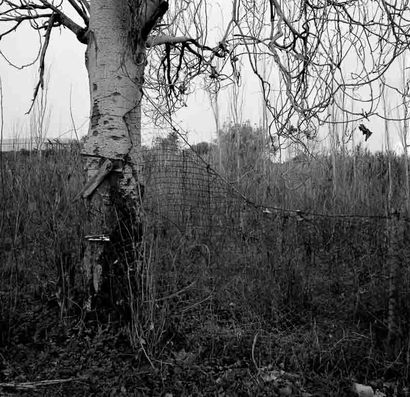 “Saltei uma vedação em direção a um labirinto” é o projeto de Miguel Marquês, interessado no deambular por territórios semi domados pela mão humana, numa deriva que o leva em caminhos circulares, beco sem saída, por trilhos onde a erva já não cresce, limitados por vegetações densas e barreiras feitas de madeira e de metal, próprias de quem quer limitar espaços e sentir-se mais seguro, apropriando-se de terrenos de todos, mas que se fazem privados por quem lá dedicou tempo.