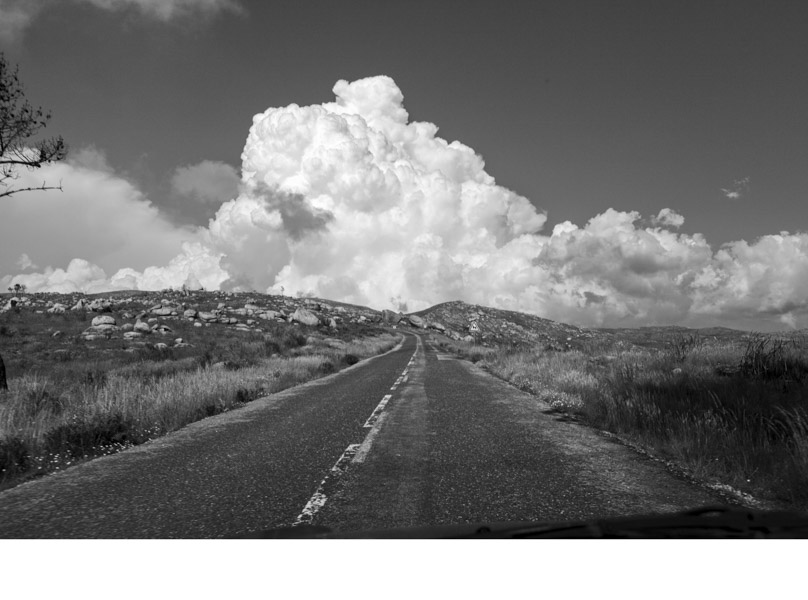 Silêncio é, desde logo, uma questão musical, alternância entre som e pausa, e o livro tem essa respiração ritmada pelas páginas em branco, que sinalizam, de algum modo, o silêncio em si, homólogo ao invisível, tudo aquilo que, ainda assim, se torna horizonte e se nos aproxima como experiência singular. Começamos com uma pequena imagem de nuvens que, na linha das ideias que acabámos de propor, nos traz à memória as “equivalências” de Stieglitz. O irrepresentável toma forma no incorpóreo das nuvens, cuja matéria se nos afigura como imponderável imagem do próprio fluir vital. Mas logo se segue uma fotografia que ocupa praticamente toda a dupla página, em que a terra, um caminho, conduzem precisamente às nuvens. Ao longo de todo o livro existe essa espécie de inquietação que alterna escalas, típica de quem procura e inevitavelmente suscita as diversas estações de uma íntima peregrinação.