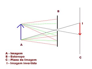 Define-se como câmara estenopeica, aquela que não possuindo nenhum elemento ótico, permite que se forme uma imagem num plano colocado no trajeto intercetado por um orifício (estenopo), orifício que substitui dessa forma o sistema ótico a que estamos habituados e que correntemente designamos de objetivas. Pensar-se que a objetiva é essencial para a formação da imagem é um erro.