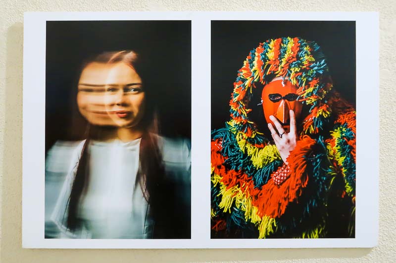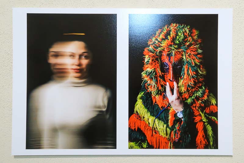 Duas exposições aparentemente dissonantes mas complementares. Por um lado, percebemos o olhar introspetivo de Enric Vives-Rubio, que nos transporta para o passado recente do confinamento, um tempo de incertezas e receios. O seu trabalho confronta-nos com as barreiras invisíveis mas também físicas, que têm como símbolo maior a máscara que nos protegeu mas também nos separou do Outro. Sem estarem visíveis, as máscaras da pandemia estão presentes nas imagens. Com Rui Miguel Pedrosa, as máscaras são uma constante nas imagens mas aqui o olhar é outro: uma atmosfera festiva, cheia de movimento e animação que nos desvenda as figuras por detrás das máscaras, património imaterial da humanidade, que rompem com tradições seculares e patriarcais e revelam que mulheres também conquistaram o seu direito a vestir o espírito do Carnaval de Podence.