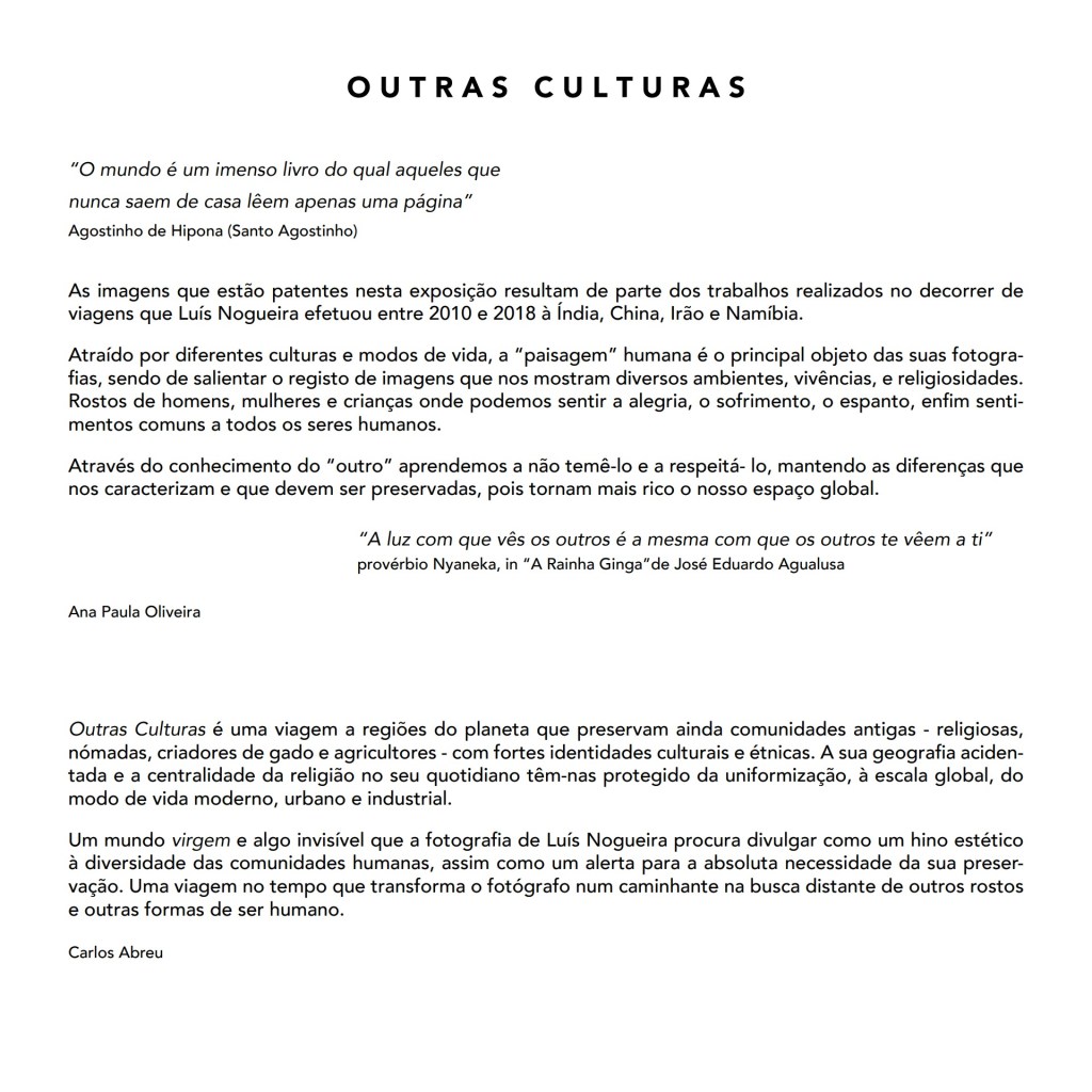 Luís Nogueira, Outras Culturas – Varanasi, Índia (2010, 2016) – Yunnan, China (2015) – Kutch, Índia (2016) – Irão (2016) – Himbas, Namíbia (2018) – Ladakh, Índia (2013) – Planalto Tibetano, China (2017) – Templo Dourado, Amritsar, Índia (2013).