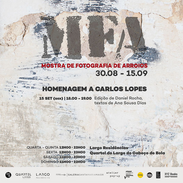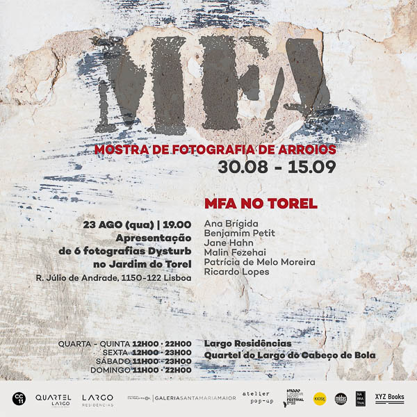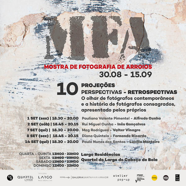 A MOSTRA DE FOTOGRAFIA DE ARROIOS – MFA é um evento cultural, que vai acontecer em Lisboa durante a primeira quinzena de Setembro. Organizada pela Associação CC11 em parceria com o Largo Residências, a Mostra conta com a participação de fotógrafos documentais e fotojornalistas, nacionais e internacionais, que exibem os seus trabalhos numa grande exposição fotográfica colectiva, em vários espaços do antigo quartel da GNR no Largo do Cabeço de Bola, na Freguesia Arroios.