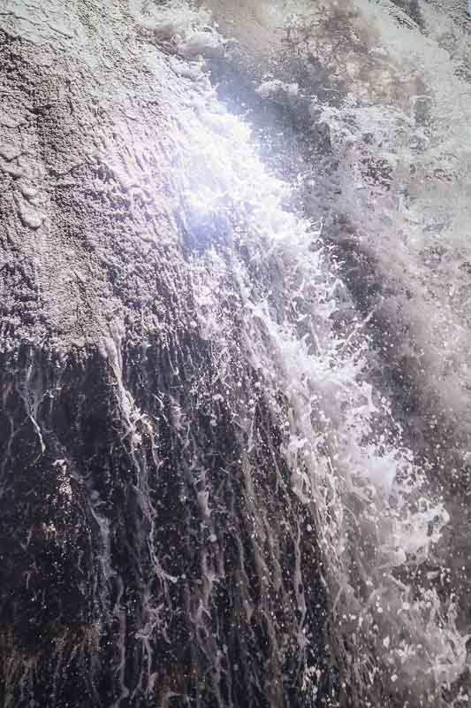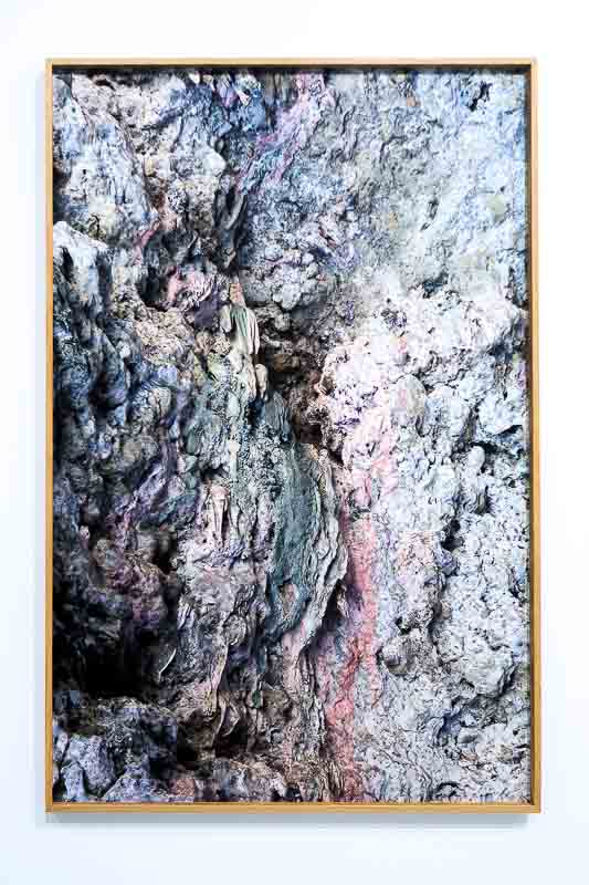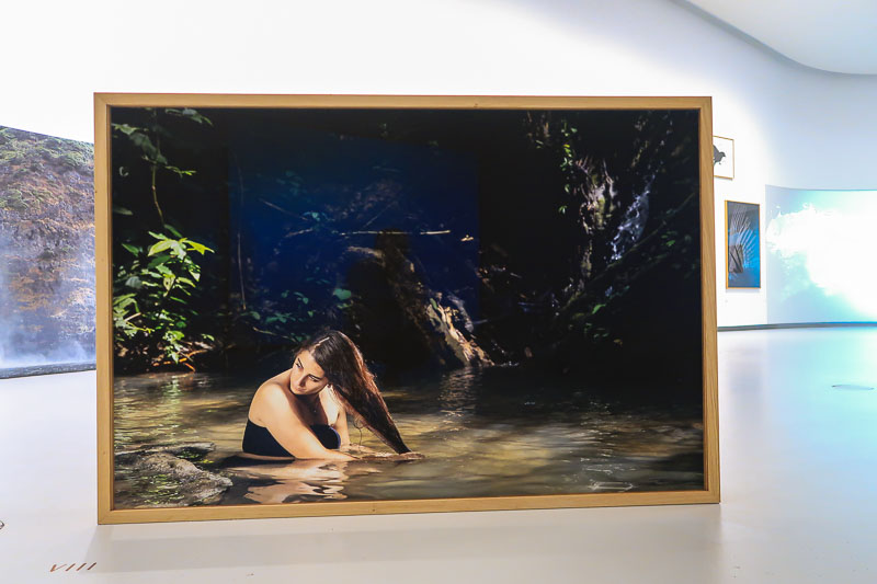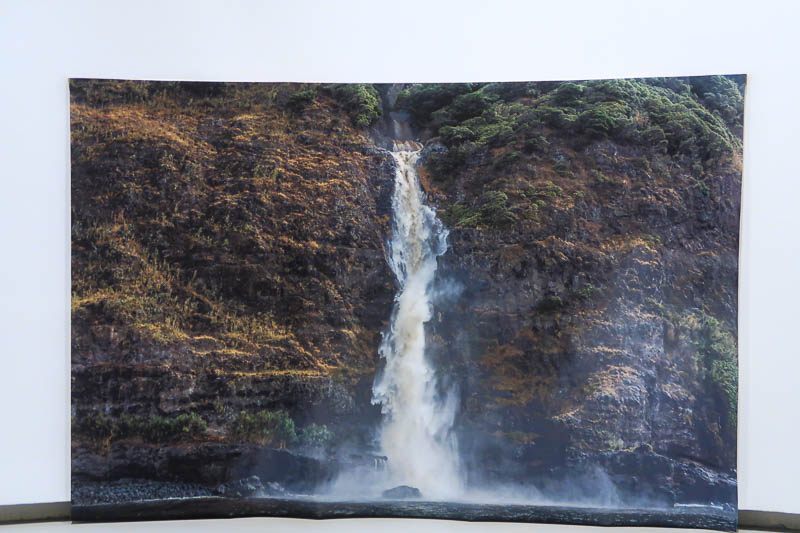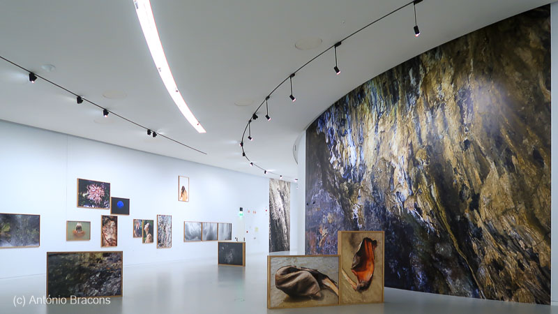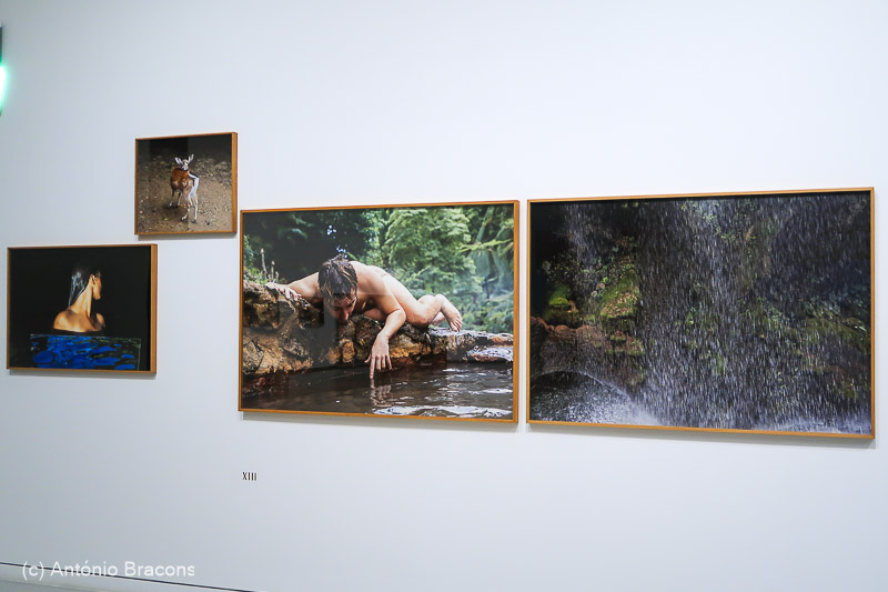 A entrar, uma fotografia a toda a altura, mostra-nos a água que cai em cachão. No interior, uma fotografia, também a toda a altura, de rocha, está presente, mas sem perturbar as outras imagens. Em caixas de madeira apoiadas no chão, animais e plantas; também nas paredes. Duas projeções apresentam em vídeo movimentos da água e os reflexos do sol. Uma queda de água parece espalhar-se pelo chão, e os pequenos lagos, no interior da ilha, onde apetece simplesmente estar, como estão aqueles jovens.