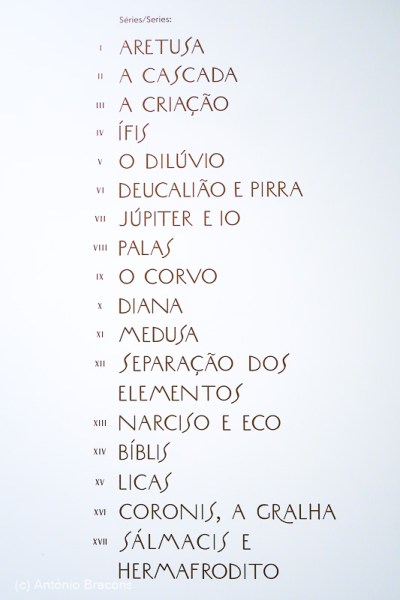 Sandra Rocha parte das Metamorfoses de Ovídio (séc. I d.C.), livro-síntese da tradição mitológica greco-latina que até hoje alimenta a história literária e pictórica do Ocidente. Nele, o autor recolhe e recria o conjunto dos mitos em que os seres (humanos e divinos de forma humana) se metamorfoseiam em elementos da natureza animal, vegetal ou mineral. A artista usa livre e intuitivamente alguns conteúdos desse livro, acrescentando-lhe leituras que nos remetem para as realidades do mundo cultural, social e político dos dias de hoje – nomeadamente, tomando como inspiração mitos protagonizados por mulheres ou deusas vítimas da concupiscência e violência dos homens e dos deuses.