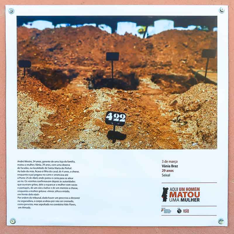 A exposição “Aqui um homem matou uma mulher”, de José Carlos Carvalho, com textos de Teresa Campos e infografia de Álvaro Rosendo, está integrada na MFA – Mostra de Fotografia de Arroios, patente na Largo Residências, no Quartel do Largo do Cabeço de Bola, Arroios, em Lisboa, de 30 de agosto a 17 de setembro de 2023 (prolongada de 15 a 17/9).