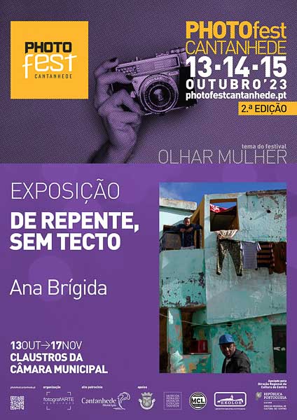 A exposição “De repente, sem tecto”, de Ana Brígida, integra o PHOTOfest Cantanhede, organizado pela Associação FotografARTE, está patente nos claustros da Câmara Municipal de Cantanhede, de 13 de outubro a 17 de novembro de 2023.