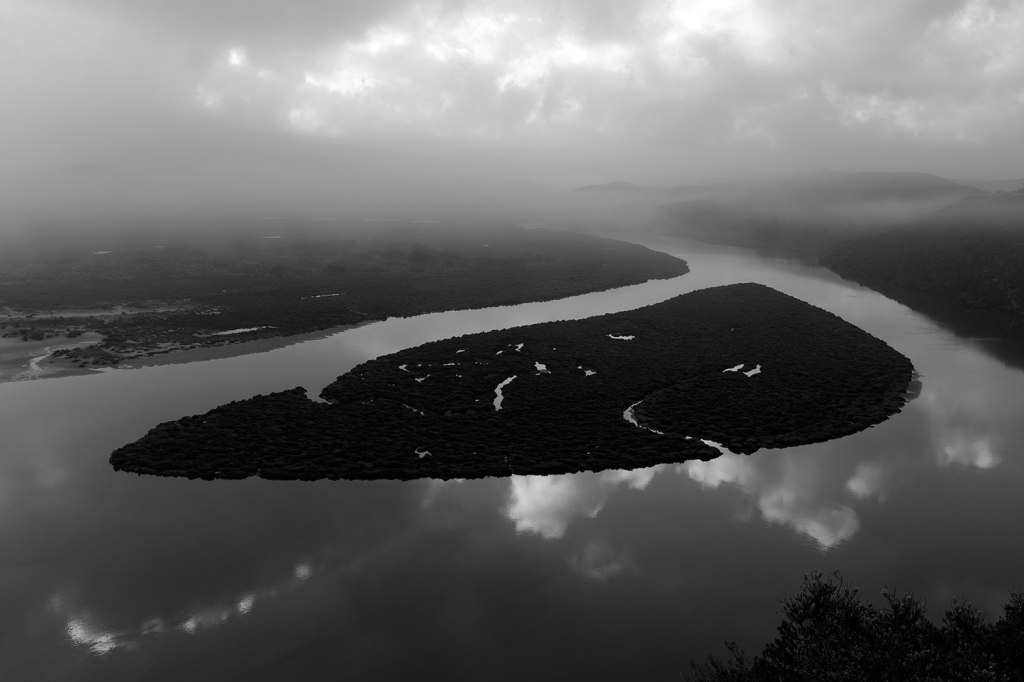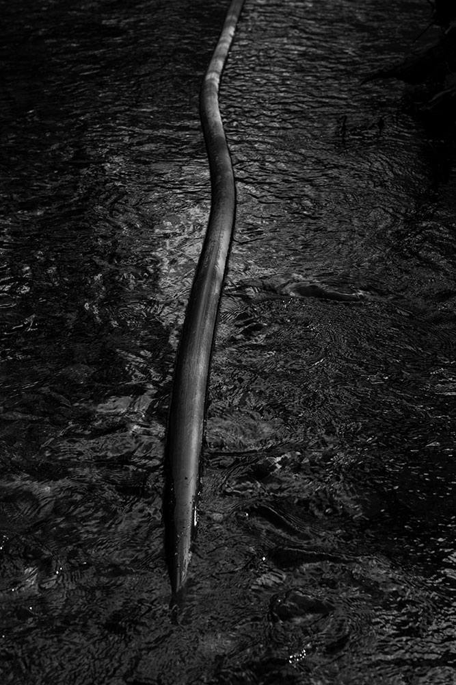 (…) Este é um projecto cuja ideia inicial vem dos primórdios da minha existência fotográfica e cuja primeira, e pouco consequente, abordagem foi feita ainda durante os tempos de estudante. Algumas fotografias feitas para uma das cadeiras do curso (…). Mas que por aí ficou, numa paciente latência, durante cerca de 30 anos. Depois de todo este tempo, e ao rever certas provas de contacto dessa época, tive realmente a percepção de que a ribeira que nasce na vertente noroeste do alto da Serra de Monchique, junto à Fóia, e desce sinuosa e ondulante até à Ponta Viva, na praia da Amoreira, em Aljezur, sempre foi, para mim, uma referência afectiva. Acompanhou toda a minha infância, adolescência e continua a acompanhar a minha existência. Foi nela que dei os primeiros mergulhos, foi nela que pesquei os primeiros bordalos, com os amigos, e enguias com o meu pai, foi nela que apanhei à mão pequenos cágados, com os quais brincava em criança… Percorri as suas margens e o seu leito vezes sem conta. Nadei e naveguei de canoa nas suas águas, outras tantas… Inconscientemente, sem conseguir resistir ao seu “water appeal”! Agora, com este trabalho, perscrutei a sua alma, entrei profundamente no seu interior e conheci-a ainda mais a fundo. Este é o meu singular tributo a este ziguezagueante ser telúrico recheado de água, cascalho, areia e rochedos, mas também de intensas sensações, sugestionados cenários e eternas efemeridades. (…)