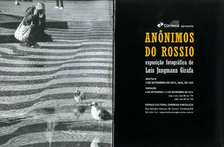 Juntamente com o livro, pensamos em uma exposição no começo do projeto, que agora, após ter sido recebida no Museu Nacional dos Correios, em Brasília, ganha sequência no Espaço Cultural Correios Fortaleza. Previmos também uma palestra com o comunicador e escritor angolano Artur Arriscado, que, nos anos 1990, na condição de exilado, com graves problemas de saúde, viveu como indigente nas ruas e praças de Lisboa. Além disso, Artur estava com Girafa no dia do passeio fotográfico pelo Rossio, em 2011. (…)