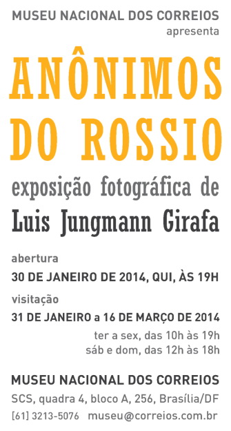 Luis Jungmann Girafa nasceu em Juiz de Fora, Minas Gerais, em 1950. Formado em arquitetura pela Universidade de Brasília [UnB], é também artista plástico, cineasta e fotógrafo. Traz no currículo mais de 30 exposições, no Brasil e no exterior, e é conceituado como um dos mais importantes artistas de Brasília. No cinema, realizou dois curtas-metragens e assinou a direção de arte de diversos longas-metragens, entre eles a do aclamado Louco por cinema, de André Luiz Oliveira. Na fotografia, Anônimos do Rossio, que deu origem a esta exposição, é seu livro de estreia.